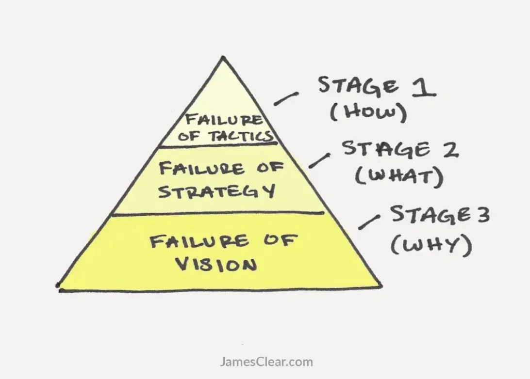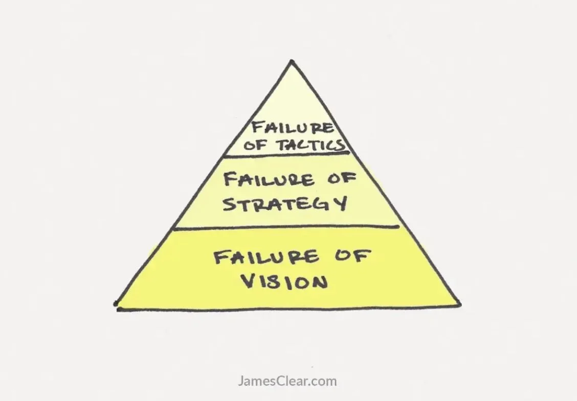 A Failure of Vision is a WHY problem. They happen because your vision or goal for what you want to become (your why) doesn’t align with the actions you are taking.
